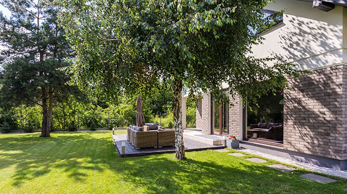 While most of us rely on mechanical air conditioning to stay comfortable, your landscape acts as an effective natural air conditioner. Anyone who has walked barefoot in the summer knows that your lawn is much cooler underfoot than pavement, and shaded spots can be up to 15 degrees cooler than areas in direct sunlight. Additionally, trees and shrubs release moisture into the atmosphere through evapotranspiration, which also helps lower the surrounding temperature.
